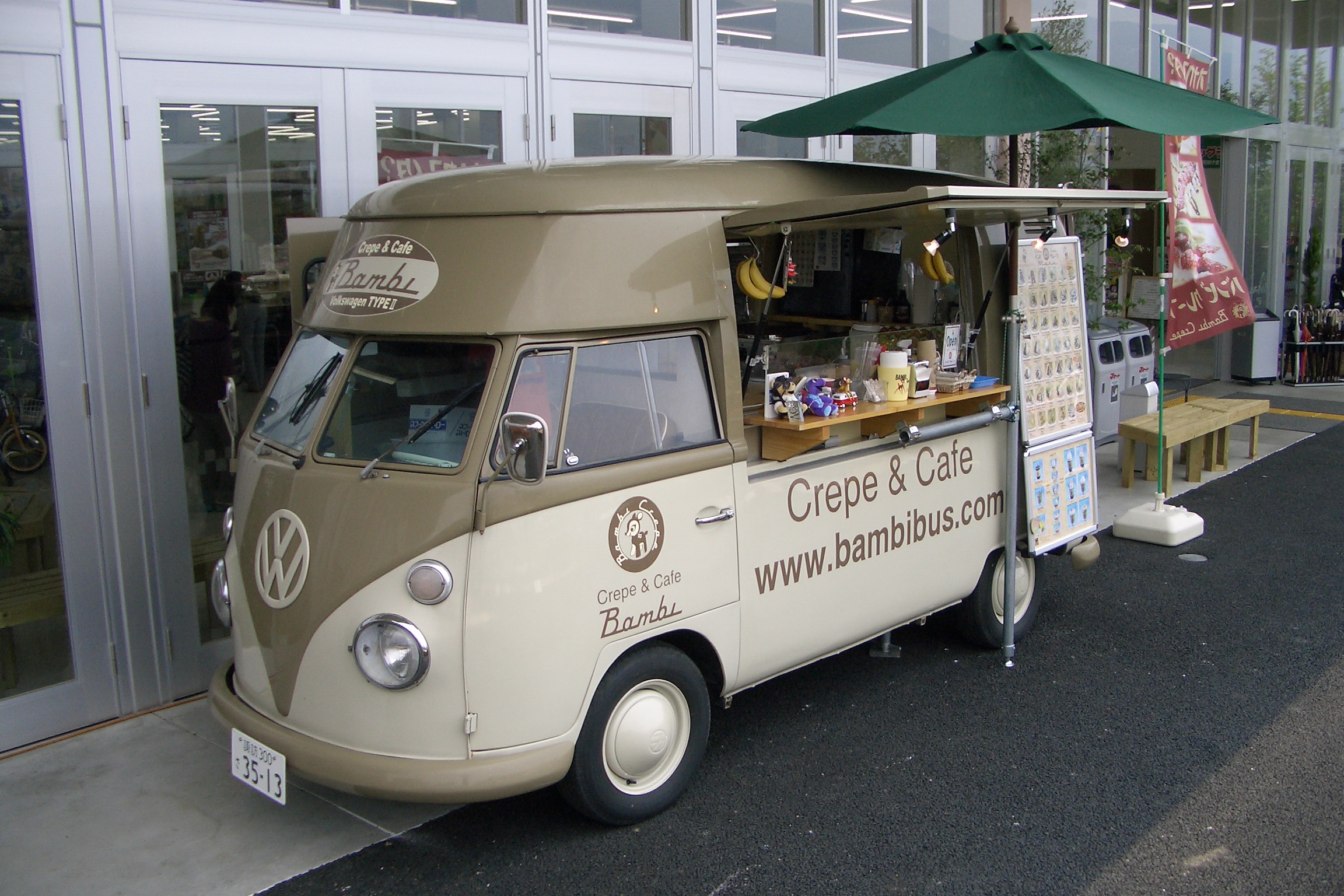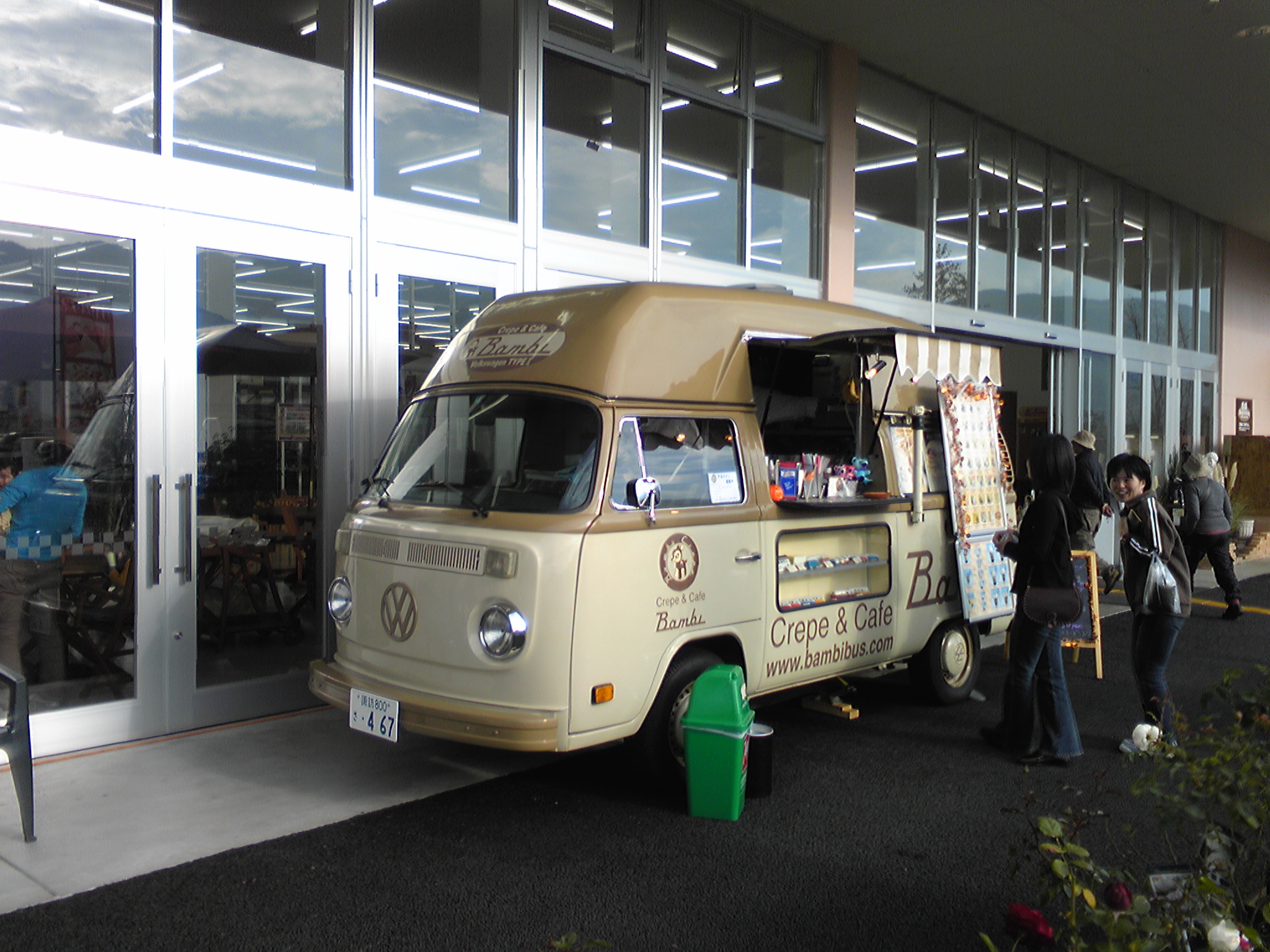 - 1日80食に満たない場合や、提供時間が限られている場合、あらかじめバンビクレープの店舗でクレープを製造、袋詰めして、それをご依頼の現場までお持ちして販売することも可能です。移動販売車でお伺いすることも可能です。